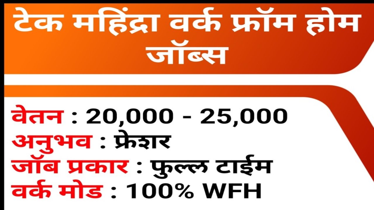 Tech Mahindra work from home : कंपनीचे नाव टेक महिंद्राजॉब प्रकार फ्रेशर…