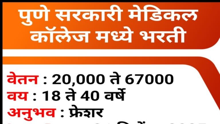 Pune Government Medical College Recruitment 2025 : विभागाचे नाव बी.…